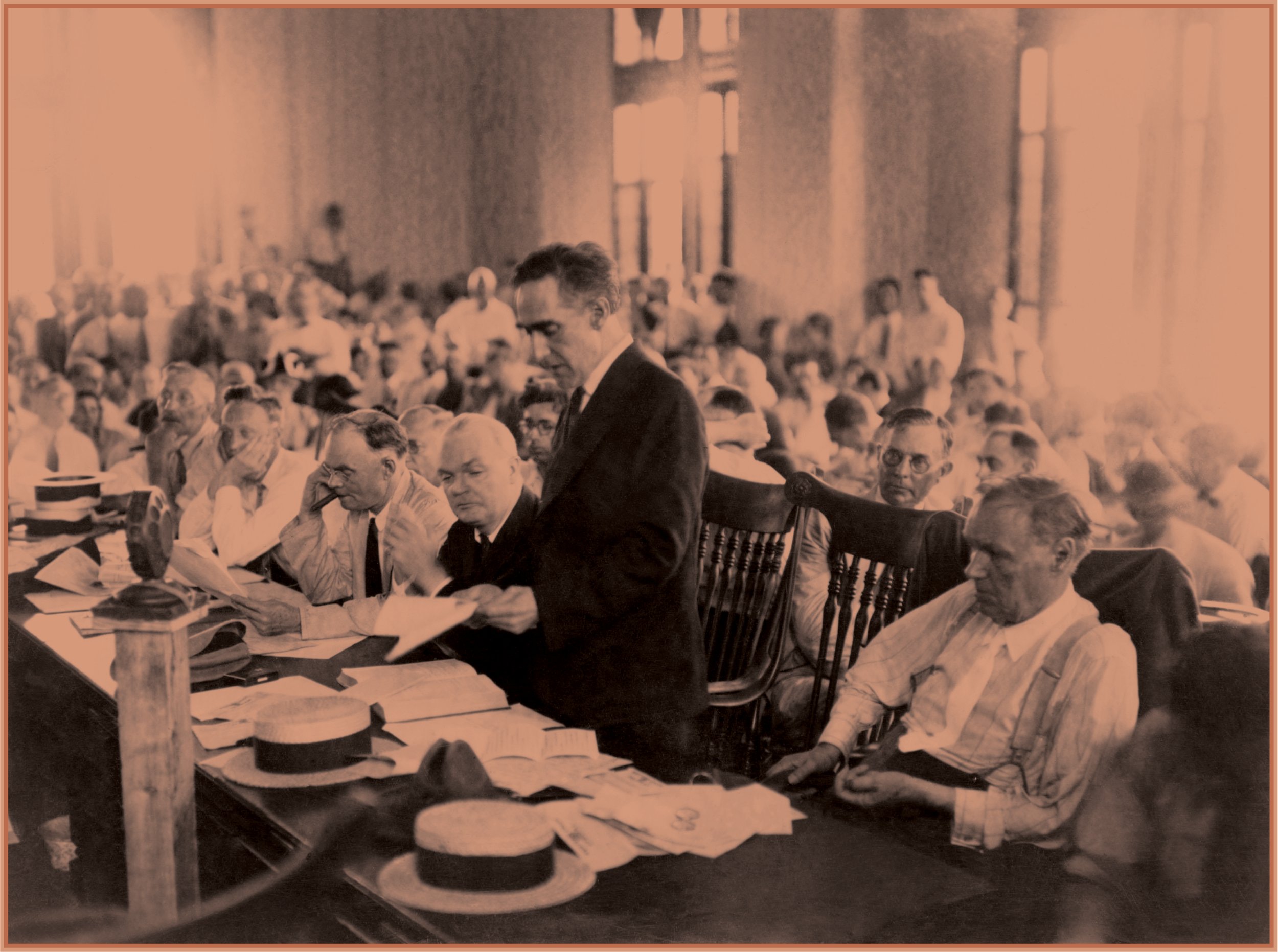 In the blanketing heat of late July I found myself in a packed courtroom in East Tennessee, watching history repeat itself. The tiny town of Dayton has hosted a reenactment of the Scopes trial every summer since 1988, the year I was born. The annual reenactment cycles through five scripts: Destiny in Dayton, One Hot Summer, Front Page News, How it Started, and the version selected for the summer of 2022, Monkey in the Middle. I’d heard that other scripts included musical numbers — bluegrass interludes. But Monkey in the Middle was a more literal interpretation of the trial, squeezing eight days of testimony and arguments, mostly verbatim, into a two-hour performance.