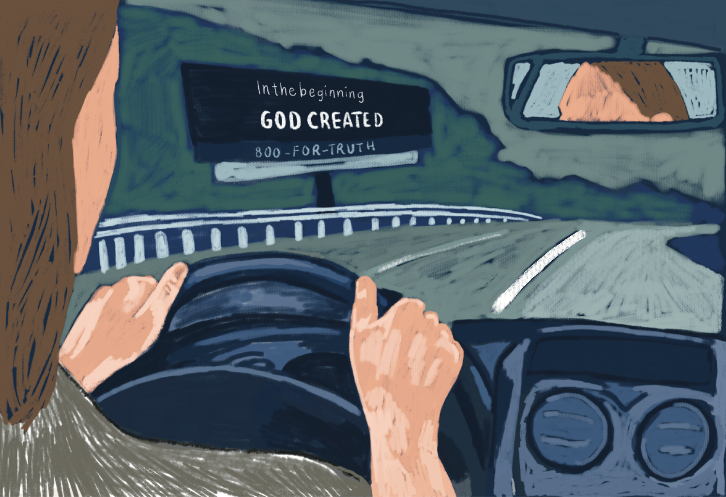On the highway driving west, I passed billboards claiming to speak for God. On the radio, on one station after another, men’s voices did the same. They all sounded so sure. I turned the radio off and drove in silence.
