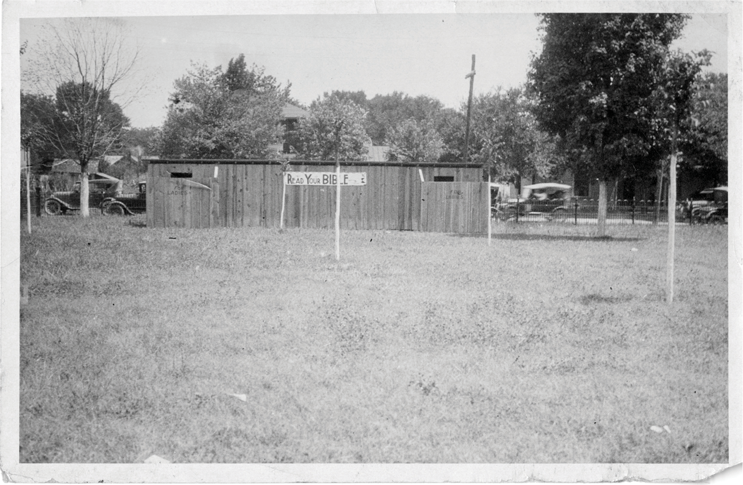 A “Read Your Bible” sign on the privies outside the Rhea County, Tennessee, courthouse during the Scopes trial in July 1925 testify to the cultural clash surrounding the event. Photo: Everett Collection Historical