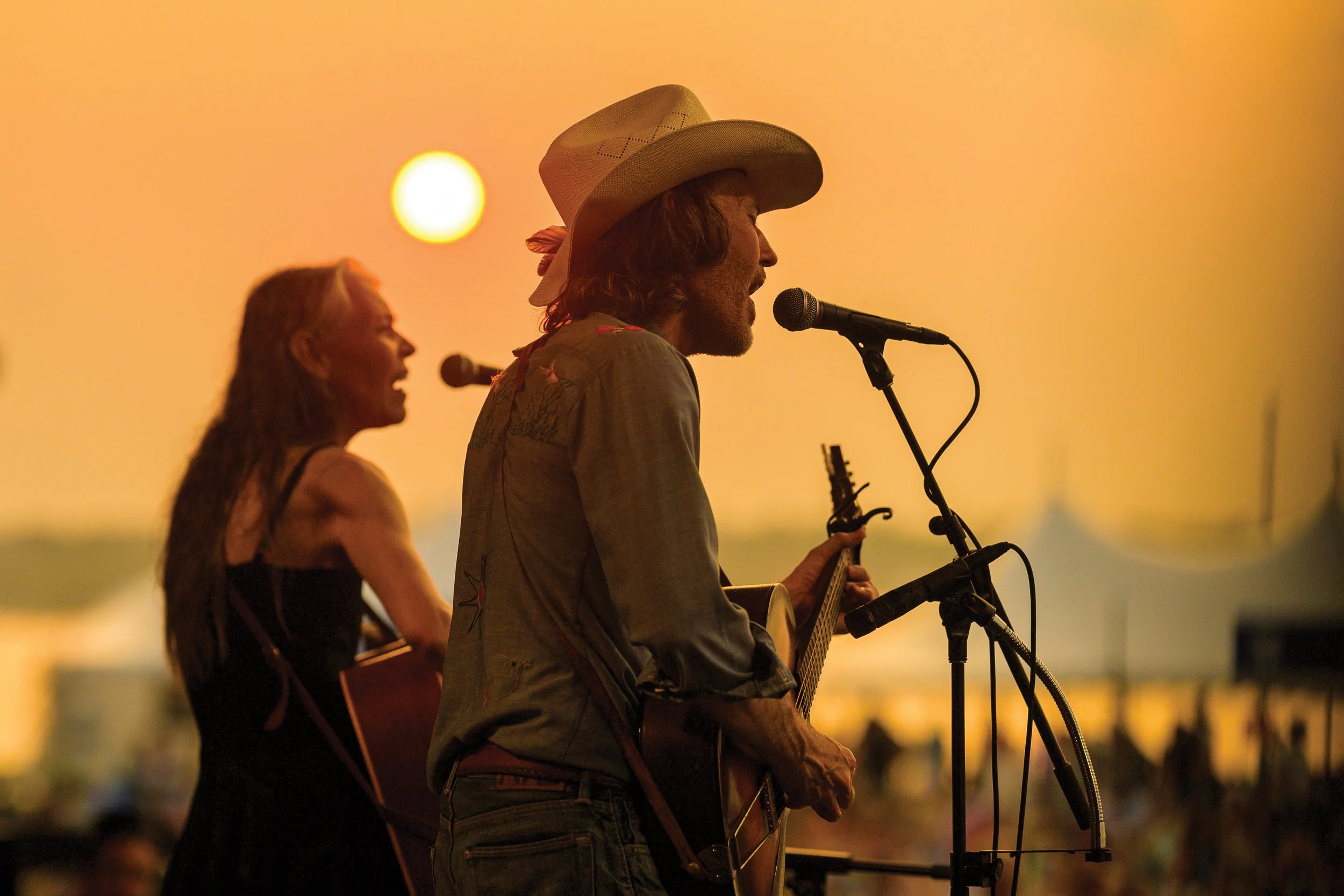 Welch and Rawlings performing on the main stage of Newport Folk Festival in 2024. Photo by Adam Kissick.