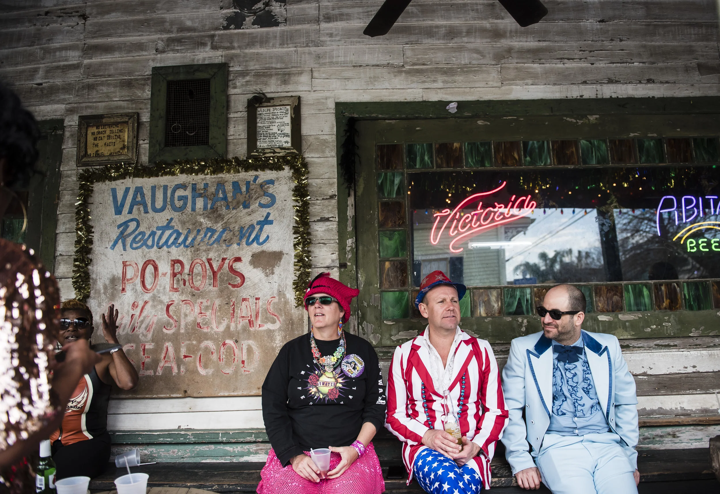 A warm breeze blows through Vaughan’s Lounge, a corner bar in the Bywater neighborhood of New Orleans. It’s February 2017, three days before Mardi Gras.
